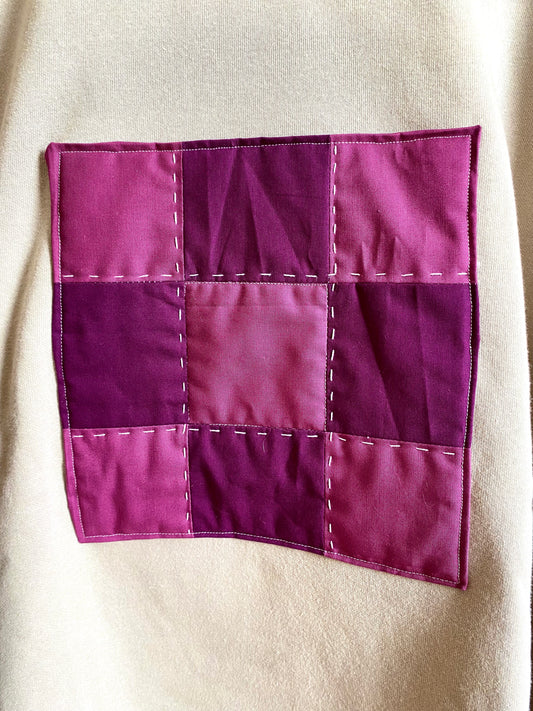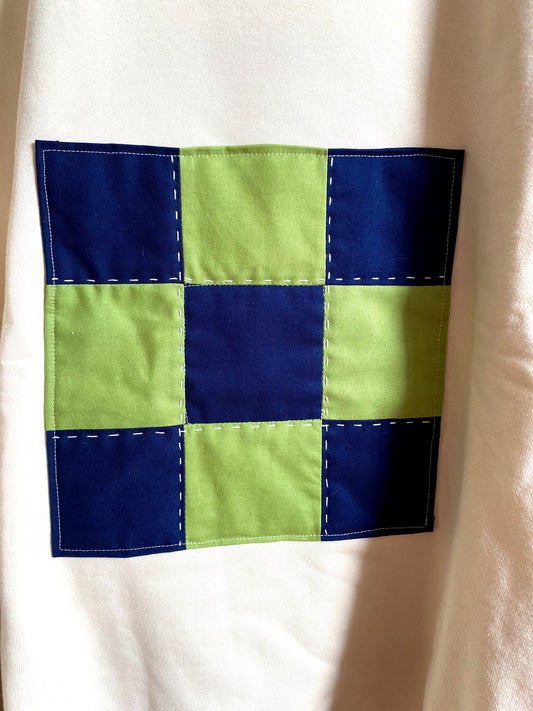 Checkered quilt blocks make these oversized sweatshirts extra cozy.