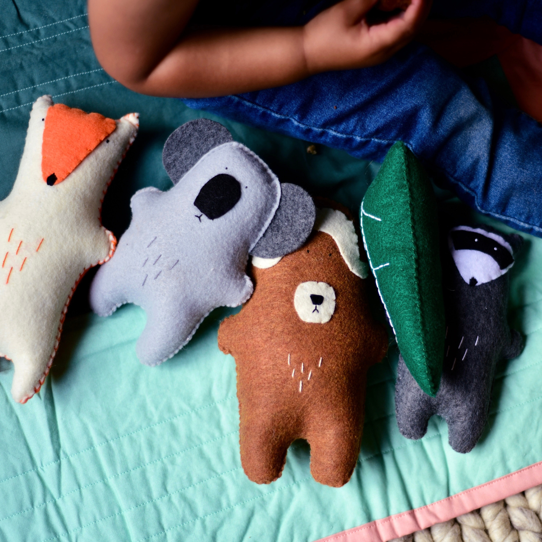 Hand-quilted blocks by Gezellig Studio make these sweatshirts extra cozy.