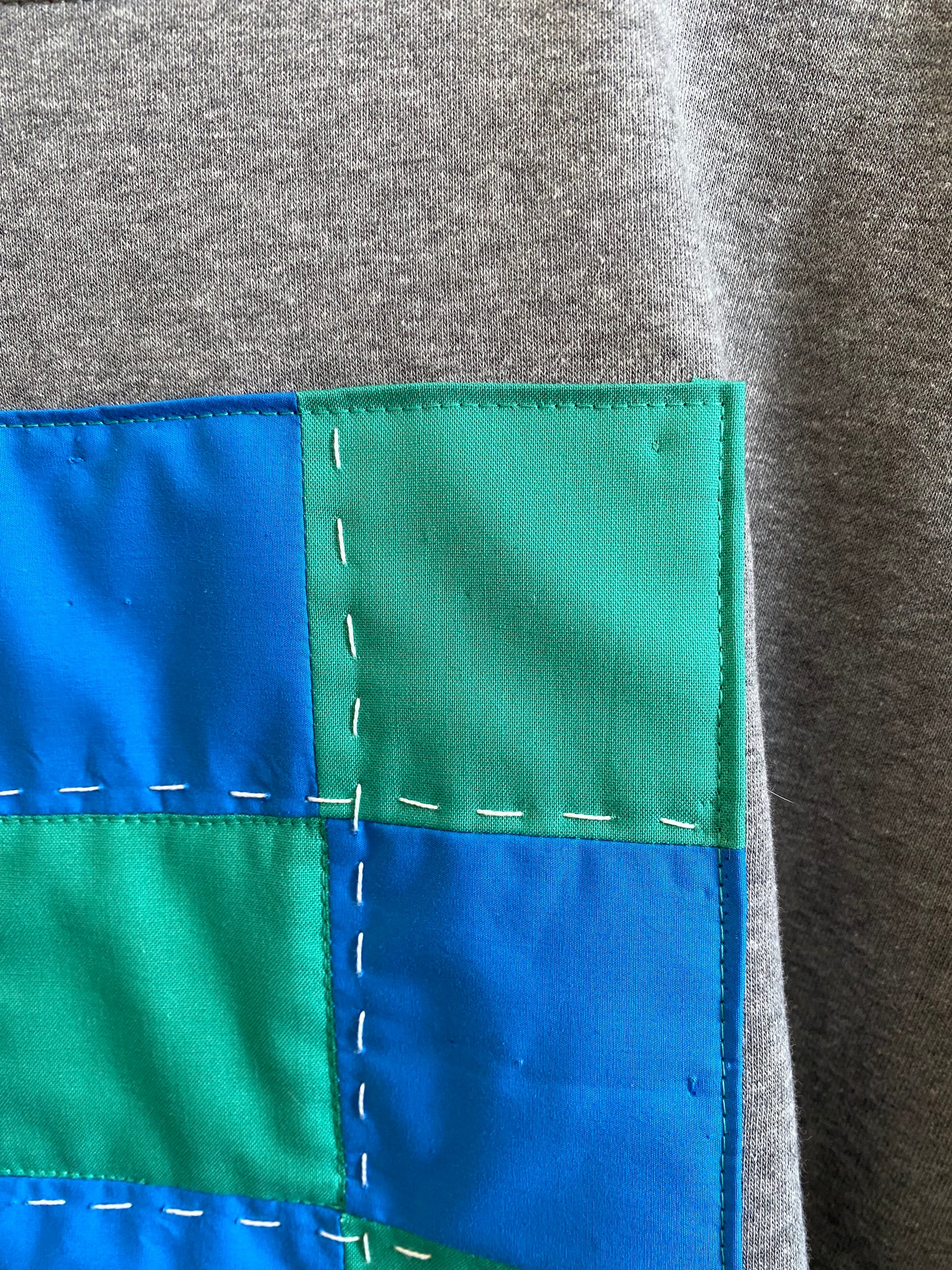 This oversized, soft crewneck sweatshirt has been made extra cozy with a checkerboard quilt block handmade by Gezellig Studio.