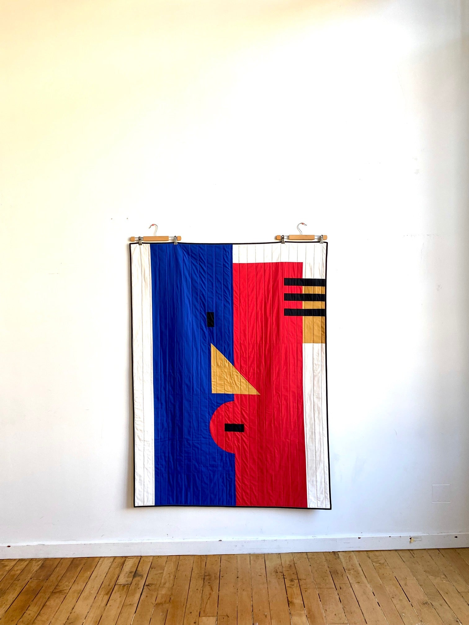 This is the third quilt in my speakers’ series. As I was designing and making this quilt, I was thinking about Mahsa Amini, her tragic death, and the uprising in Iran. Witnessing the level of control so many states continue to exert over women is overwhelming. And yet, in the face of such brutality, the Iranian people took to the streets, day after day after day, courageously demanding their freedom — using their voices as powerful forces of change. I am in awe of their resiliency. For all these reasons, I’m calling this quilt, “Speak truth to power.”.